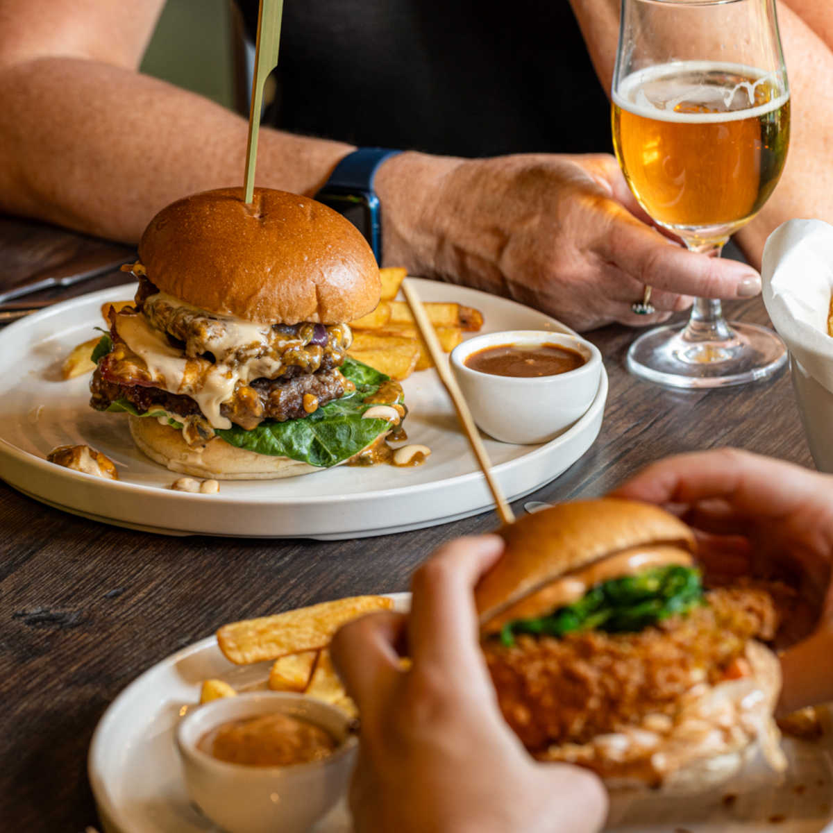 Double beef burger, smoked cheese, bacon, house sauce, skin-on chips | 18 1250 kcals